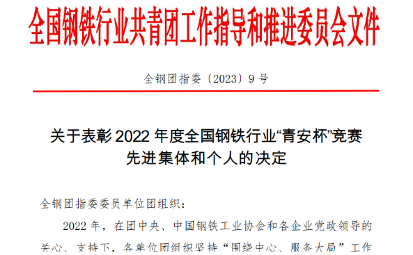 榪戞棩錛屼粠鍏ㄥ浗閽㈤搧琛屼笟鍏遍潚鍥㈠伐浣滄寚瀵煎拰鎺ㄨ繘濮斿憳浼氫笂浼犳潵濂芥秷鎭紝閫氶挗鍦?/span>2022騫村害鍏ㄥ浗閽㈤搧琛屼笟鈥滈潚瀹夋澂鈥濈珵璧涗腑錛岃崳鑾峰欏硅崳瑾夌О鍙楓傞氶挗鍏徃鍥㈠鑾瘋瘎鈥滈潚瀹夋澂鈥濈珵璧涗紭縐緇勭粐鍗曚綅錛?/span>閫氶挗鍏徃鍥㈠涔﹁搴為潤鑾瘋瘎鈥滈潚瀹夋澂鈥濈珵璧涙渶浣崇粍緇囪?/span>錛涚劍鍖栦簨涓氶儴鍥㈠銆佺偧閾佷簨涓氶儴鍥㈠鑾瘋瘎鈥滈潚瀹夋澂鈥濆厛榪涢泦浣?/span>錛涚偧閾佷簨涓氶儴鐢熶駭鎶鏈涓諱換甯堣檔鏅椼佺劍鍖栦簨涓氶儴緇煎悎綆$悊瀹や富綆″憳寮犲皬闆ㄨ幏璇?/span>鈥滈潚瀹夋澂鈥濆厛榪涗釜浜?/span>錛涚劍鍖栦簨涓氶儴鐐肩劍浣滀笟鍖?/span>6鍙風(fēng)倝浜ゆ崲鏈哄矖浣嶈幏璇?/span>鈥滈潚瀹夋澂鈥濋潚騫村畨鍏ㄧ敓浜хず鑼冨矖錛涚偧閾佷簨涓氶儴浜屽彿楂樼倝浣滀笟鍖哄肩彮瀹ょ瓑4涓彮緇勮幏璇?/span>鈥滈潚瀹夋澂鈥濇渶浣抽潚騫村畨鍏ㄧ洃鐫e矖錛涙満鐢?shù)淇犲叕鍙告淇綔涓氬尯璁懼鎶鏈憳鐜嬪皬璺瓑5鍚嶄釜浜鴻幏璇勨滈潚瀹夋澂鈥濇渶浣抽潚騫村畨鍏ㄧ洃鐫e矖宀楅暱錛堝憳錛夈?/span>